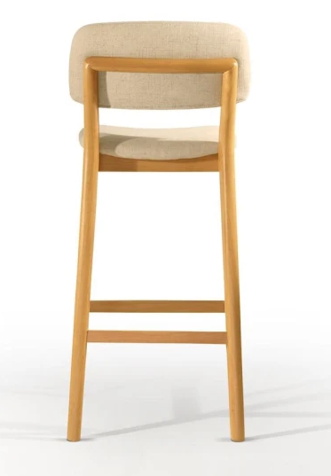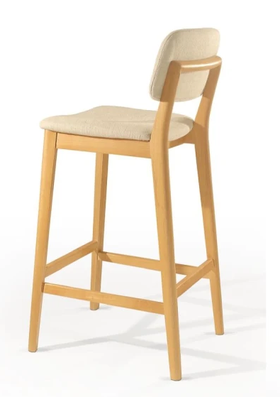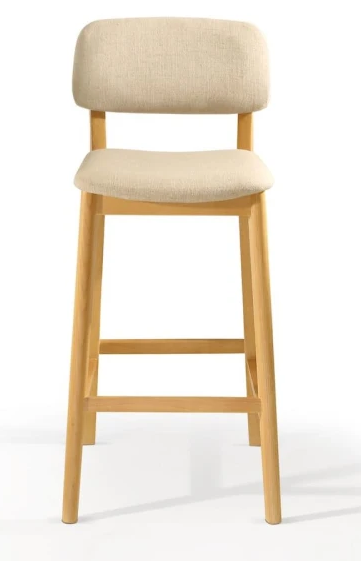 Banqueta elegante de madera maciza. Tapizada en tela rústica lavable.