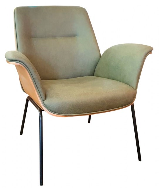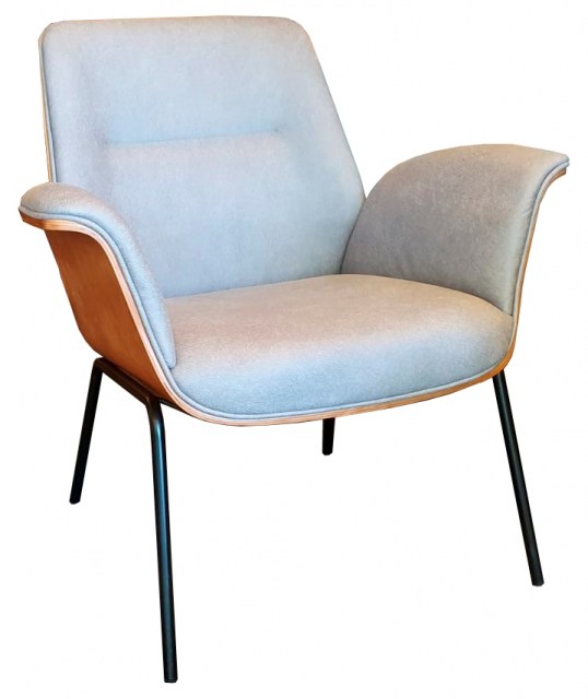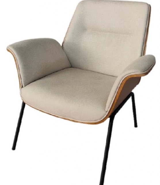Comoda, tapizada en vegan leather y con estructura a la vista de madera. Perfecta para living, dormitorio o zona de relax.
