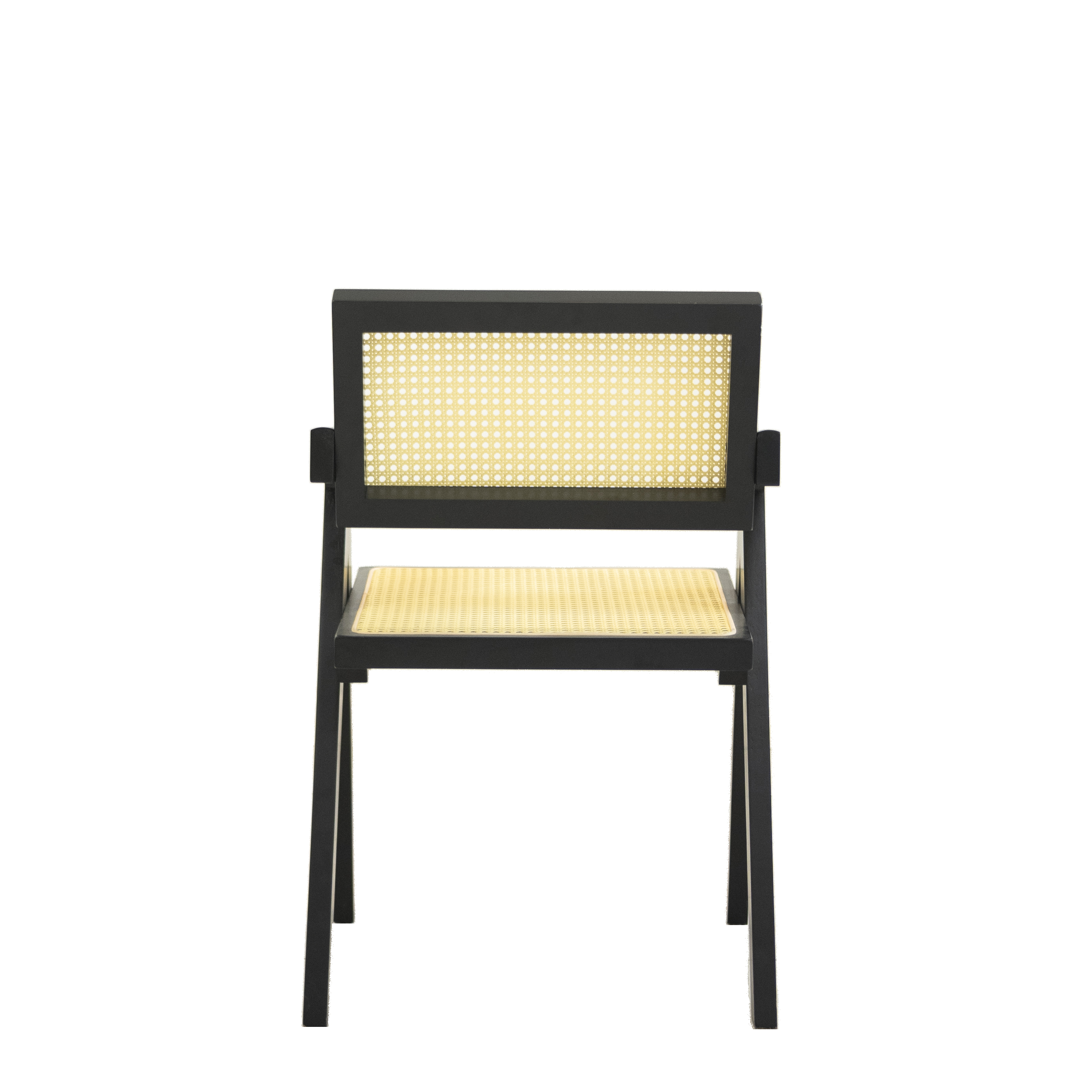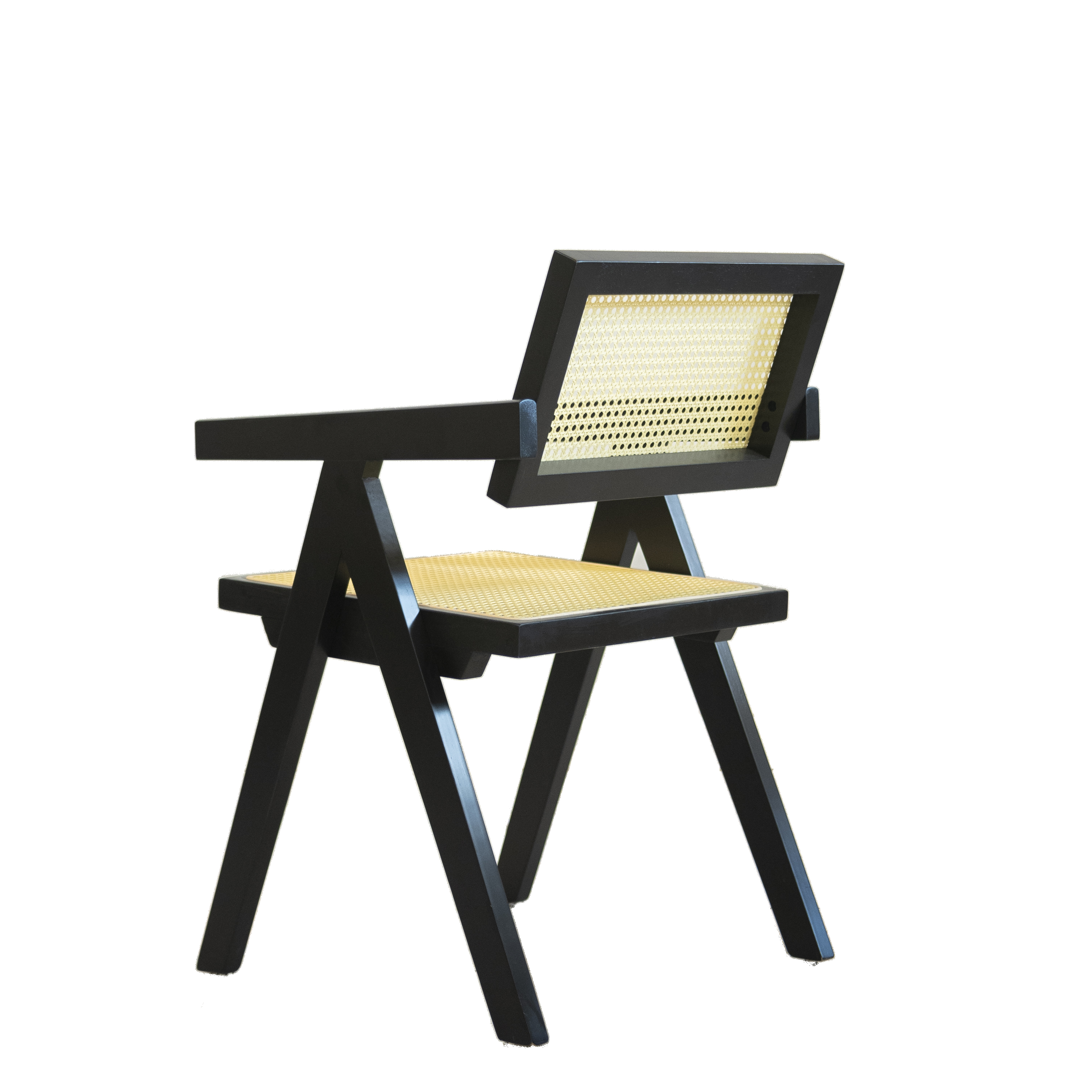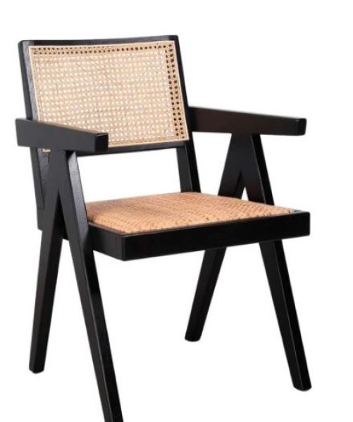 Butaca de diseño vintage. Estructura de madera y esterilla en respaldo y asiento.
