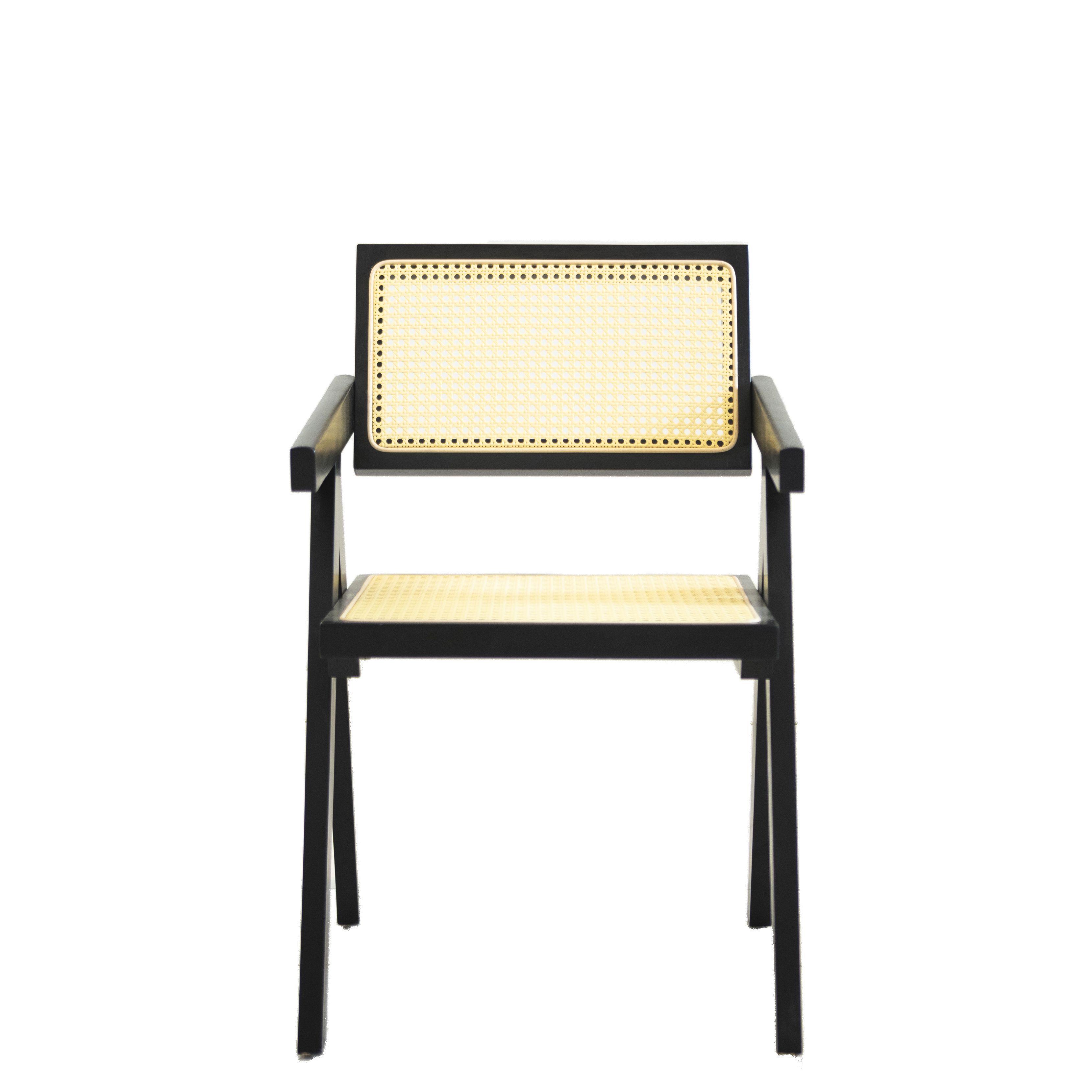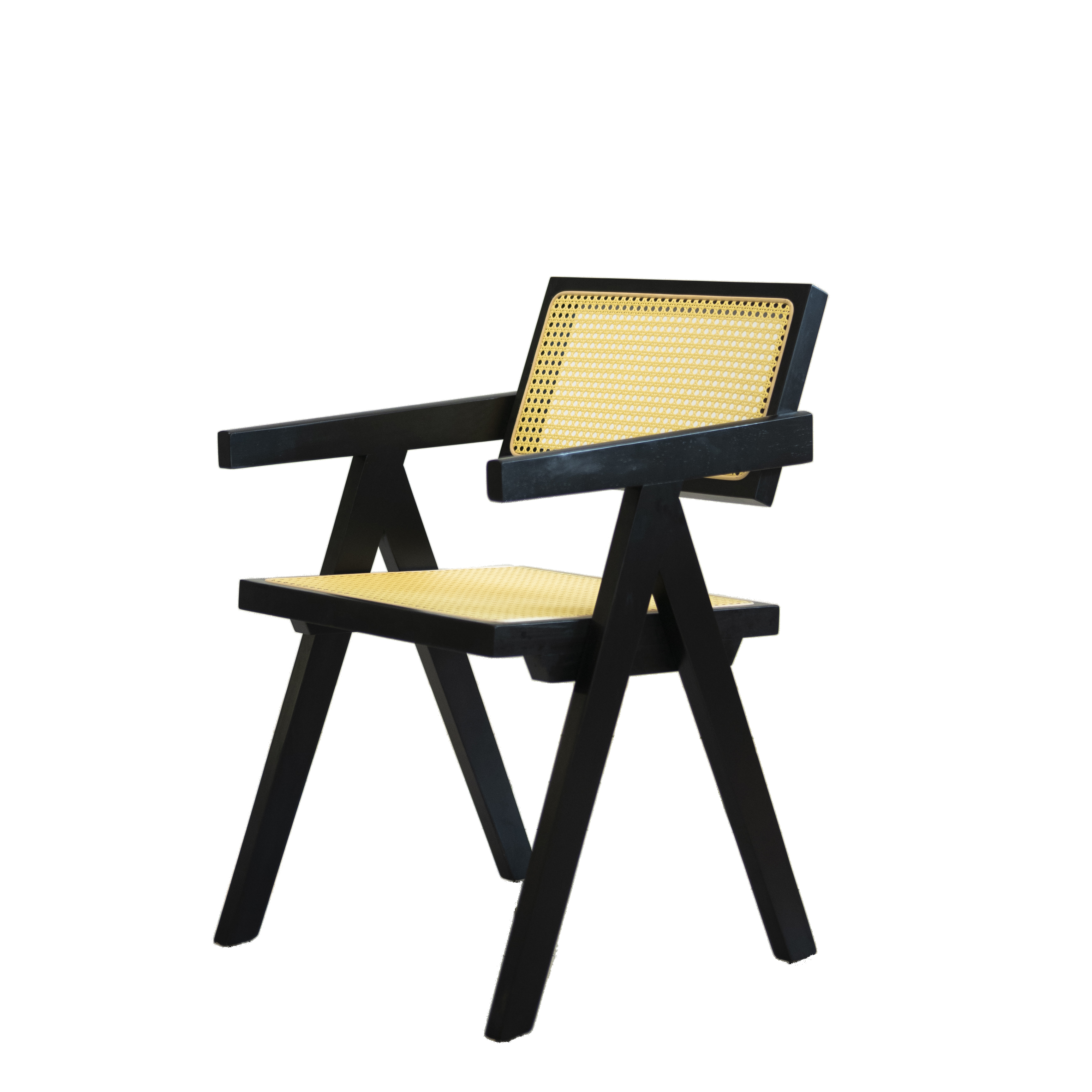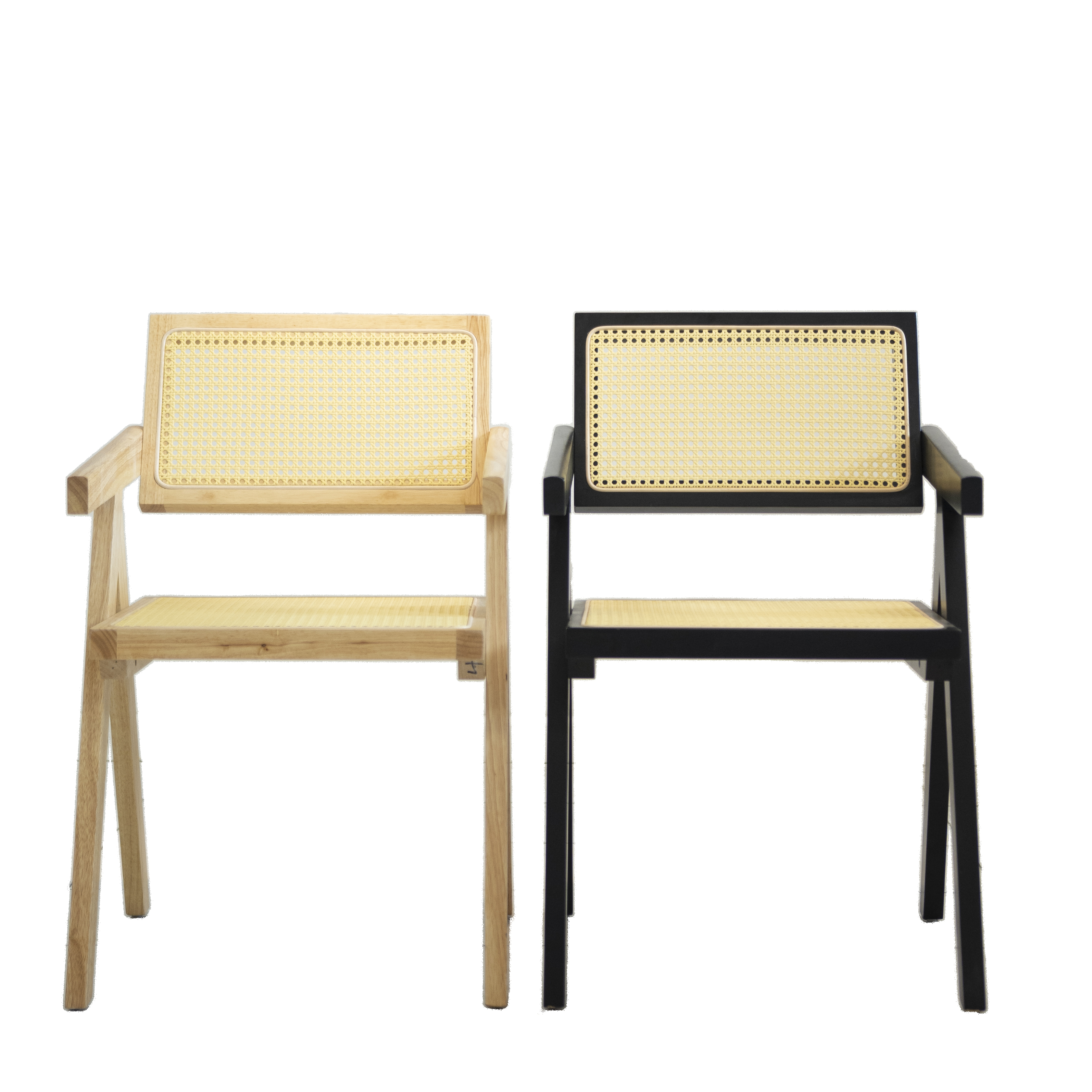 Butaca de diseño vintage. Estructura de madera y esterilla en respaldo y asiento.