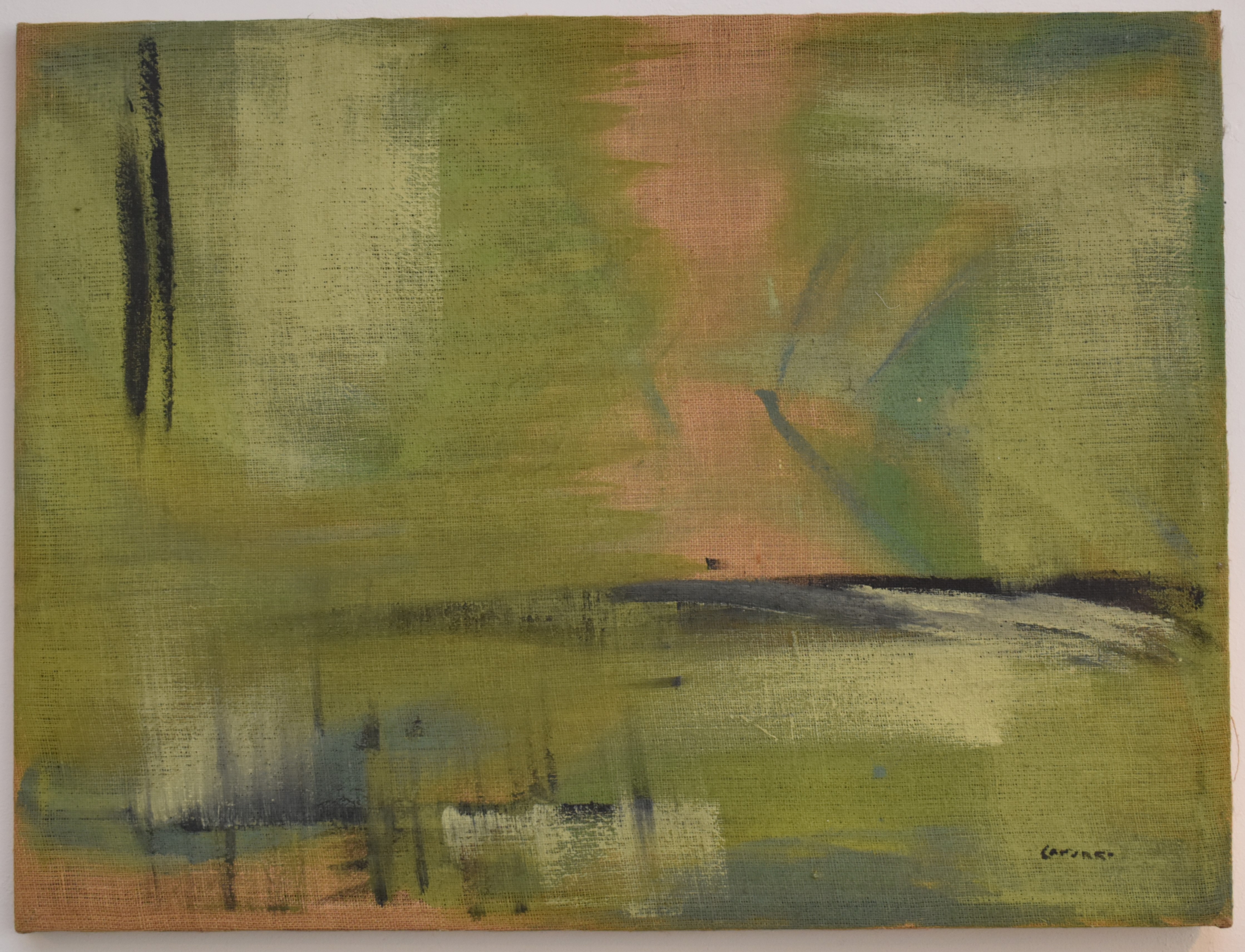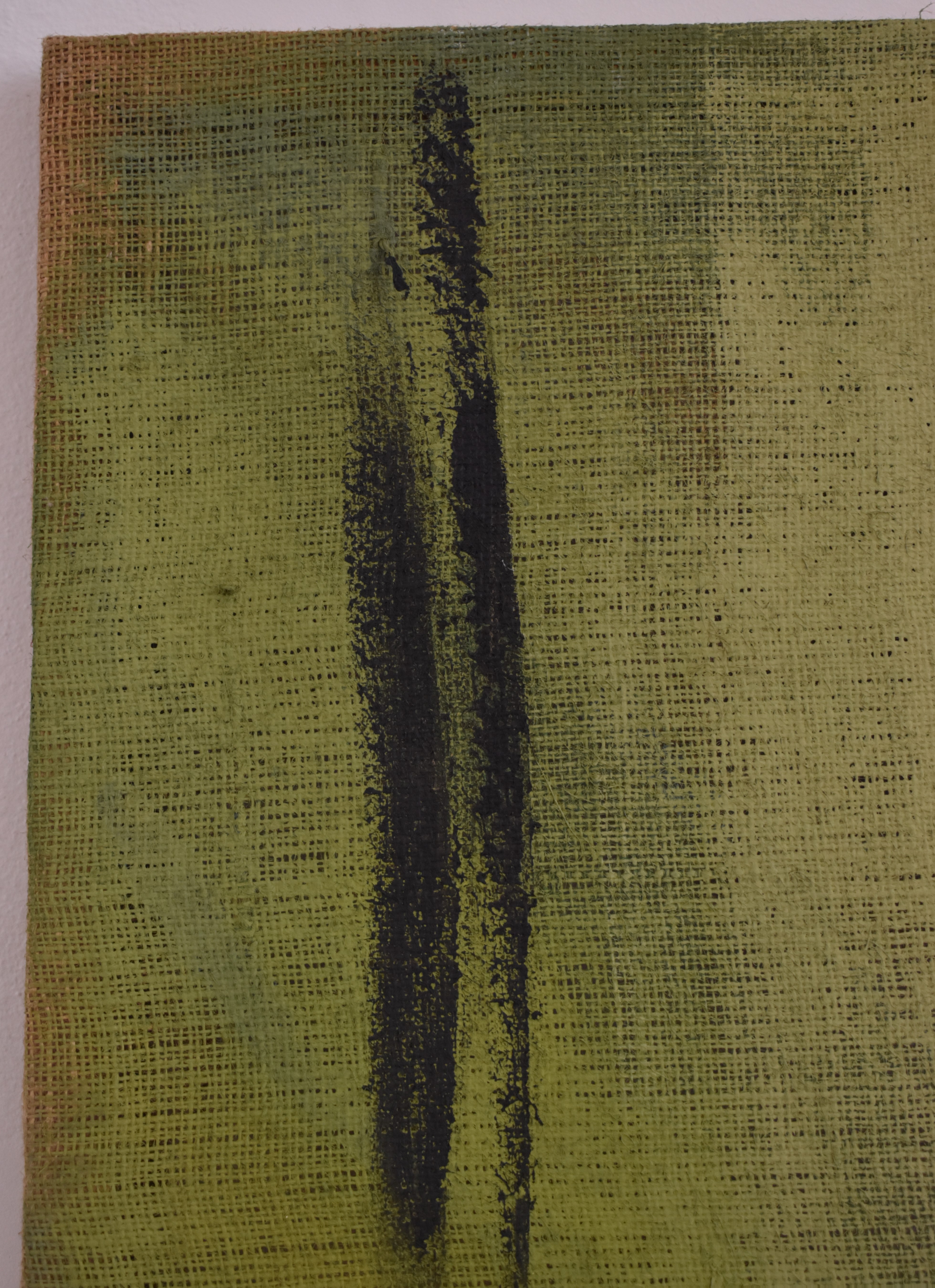 Cuadro Bosque, diseño en tonos verdes, realizado en tela arpillera crea un ambiente rustico y hogareño.