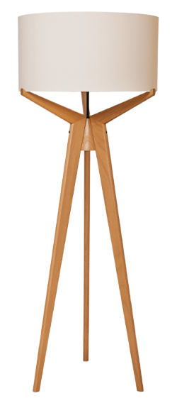 Lampara de pie en madera Imbuía con pantalla en tela blanca.