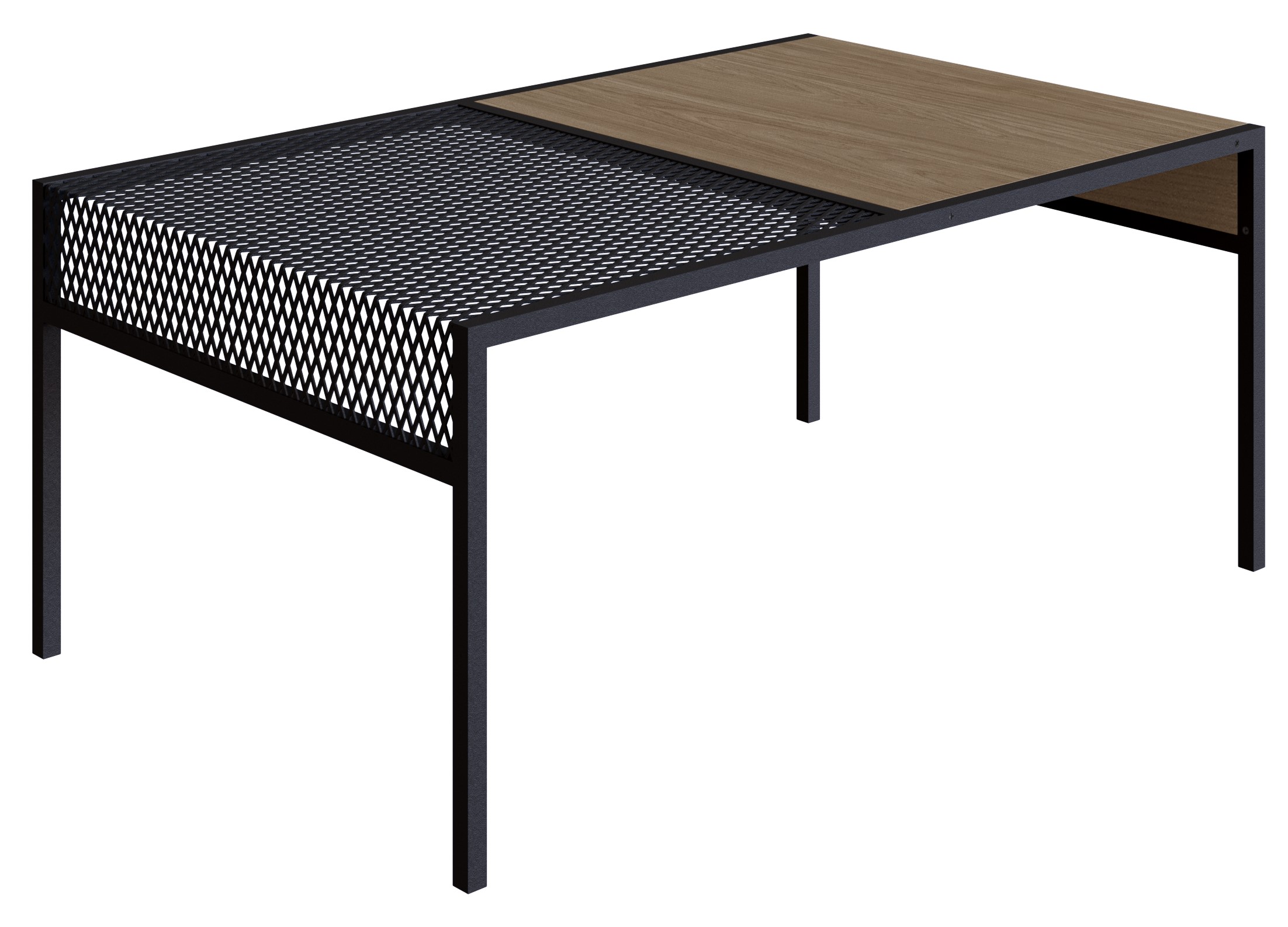 Mesa Centro Industrial Finlandia combinada metal y madera