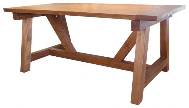 Mesa Comedor con patas tipo caballete y tapa de pino americano. Fabricación nacional. Se hace a medida.