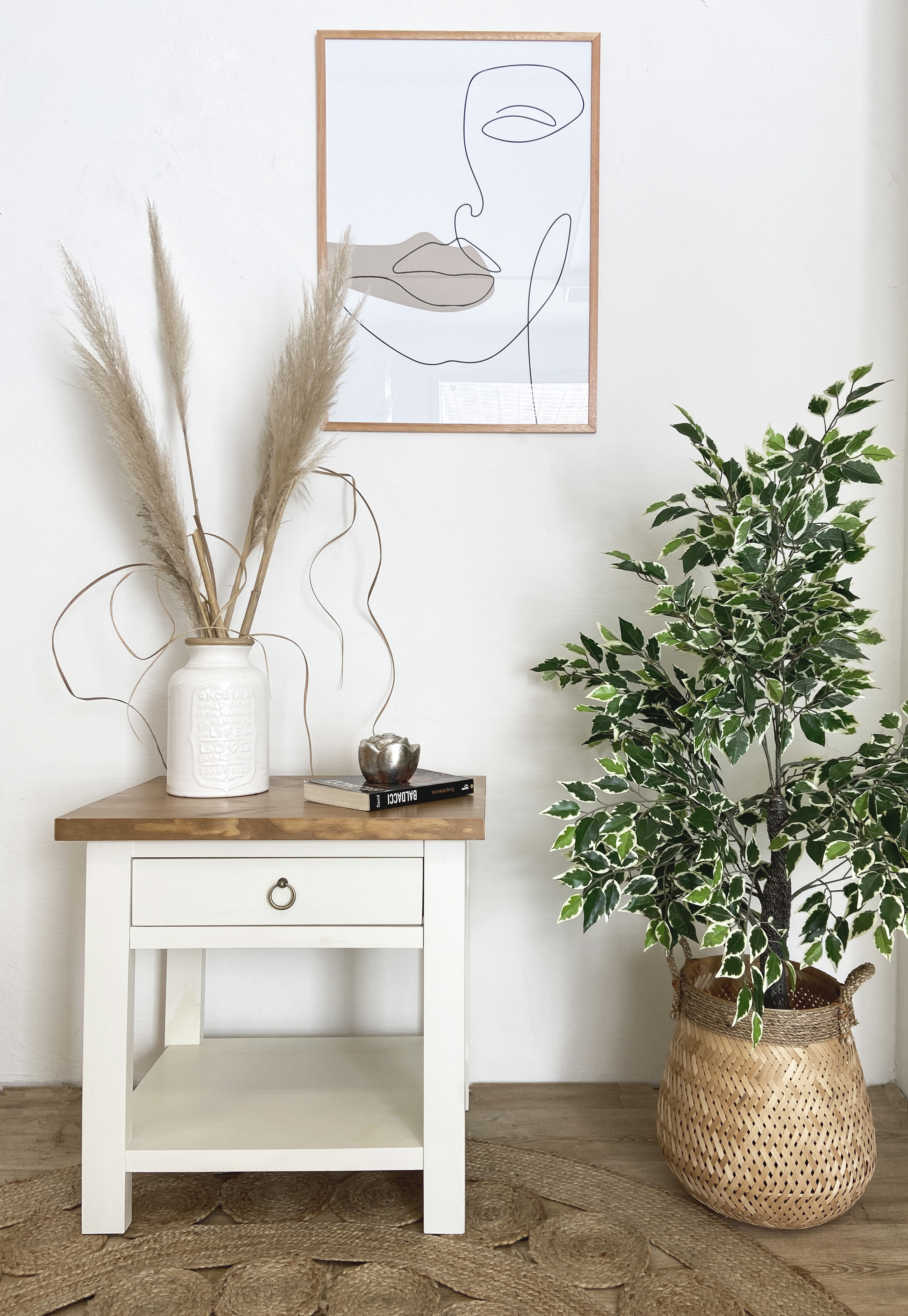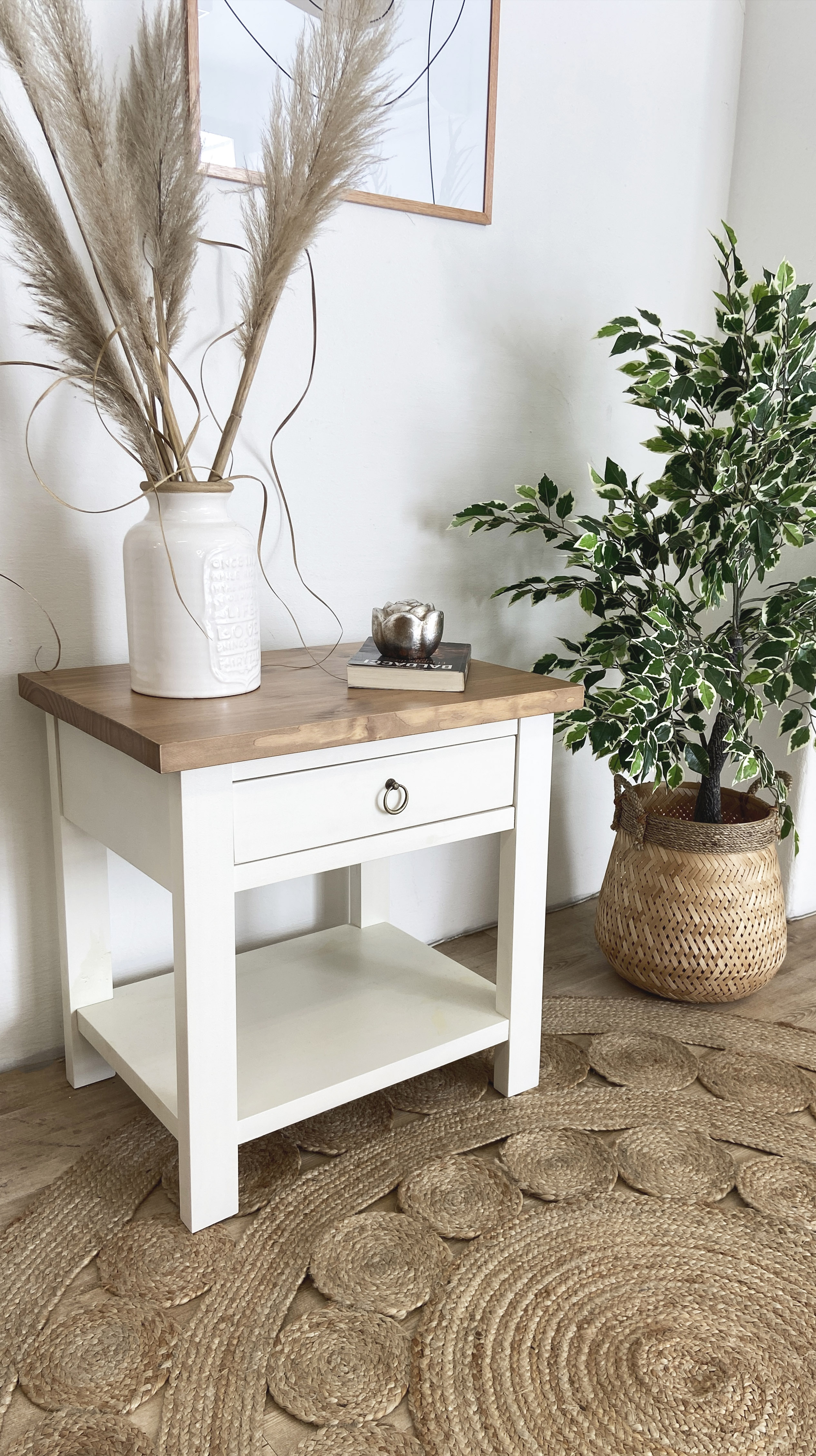 Mesa de luz Country en pino americano. Se hace a medida.