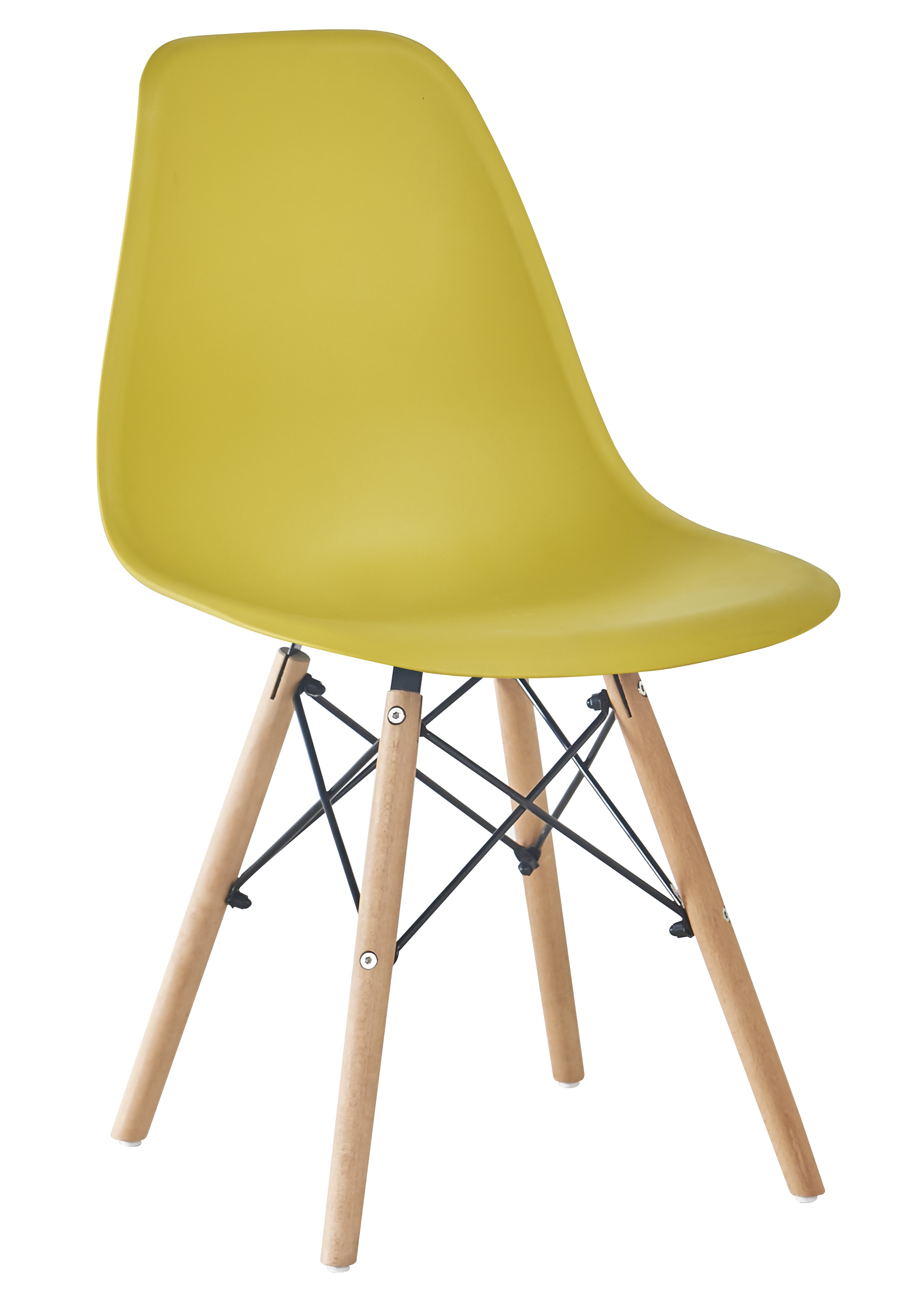 Silla de diseño. Asiento de polipropileno y patas de madera.