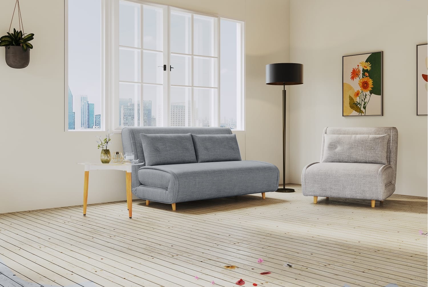 Sillón Cama Osaka. Tapizado en tela rustica, super cómodo y confortable.