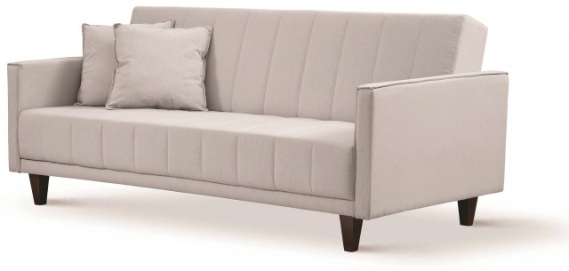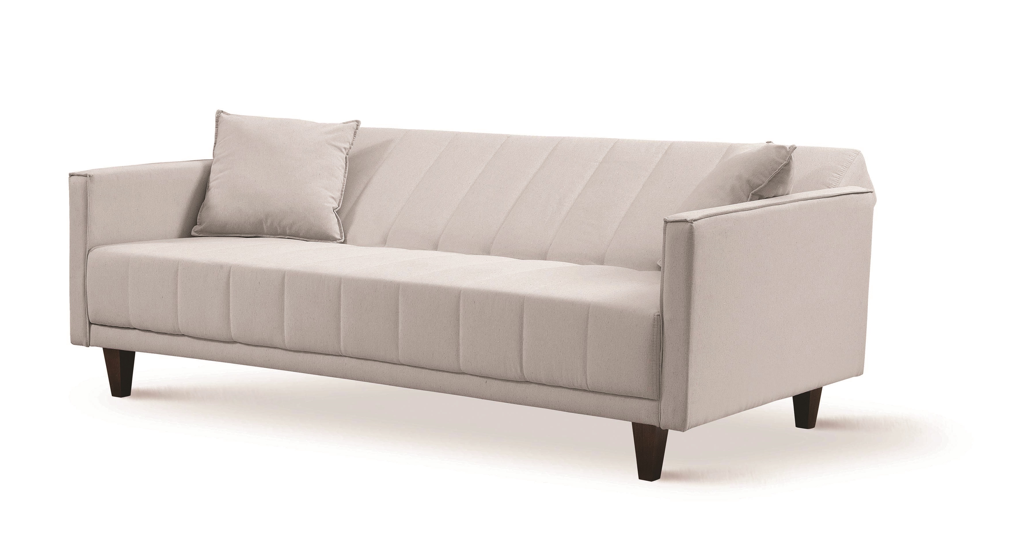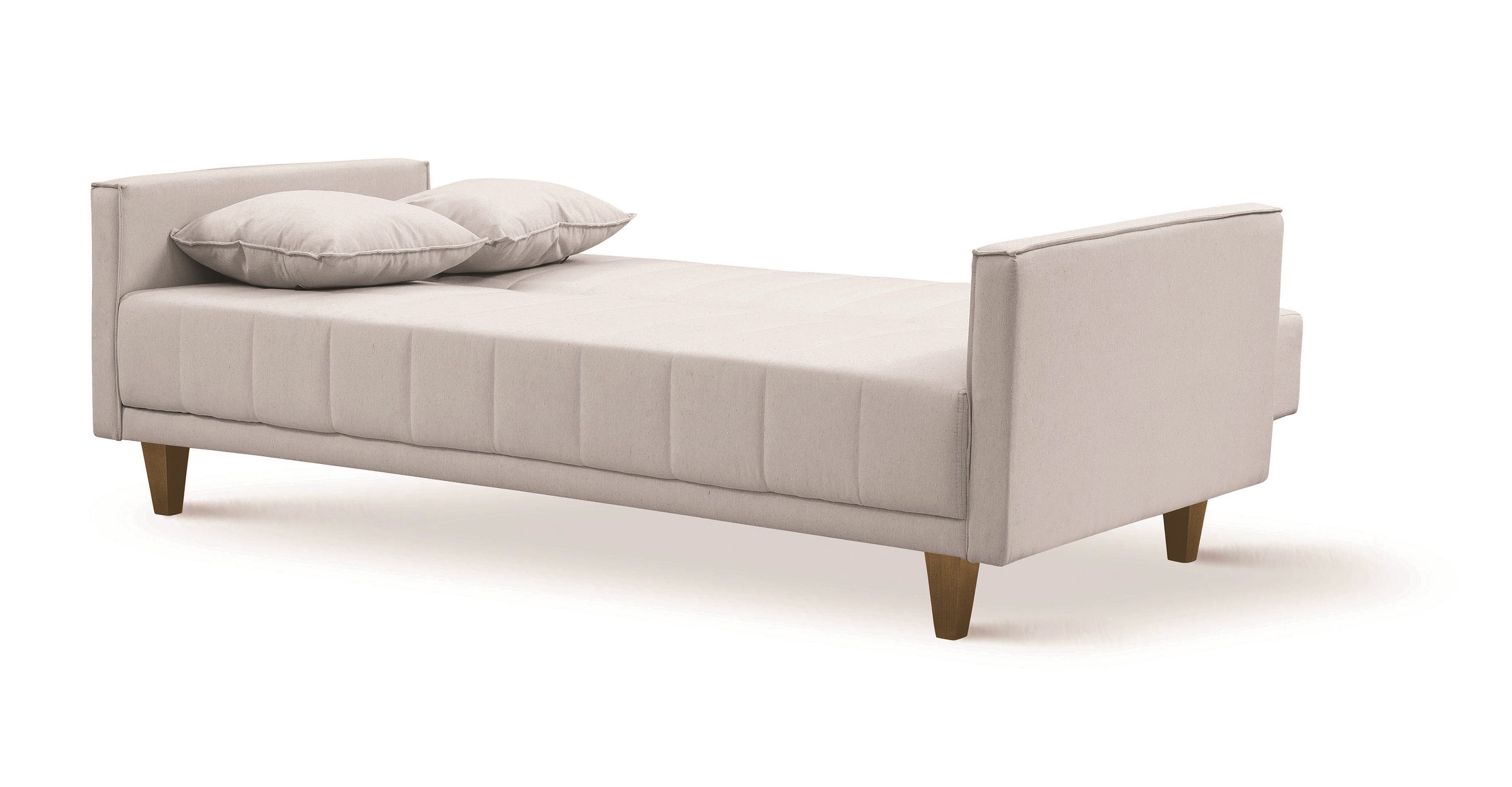 Sofá cama de diseño vintage. Plancha soft y resortes zig zag. Patas de madera walnut.