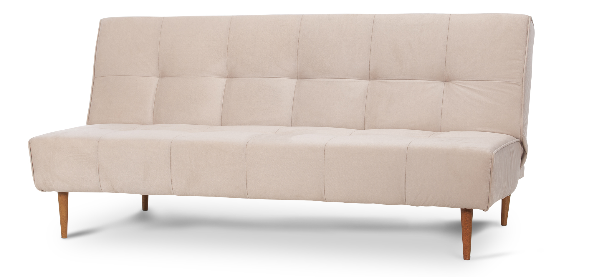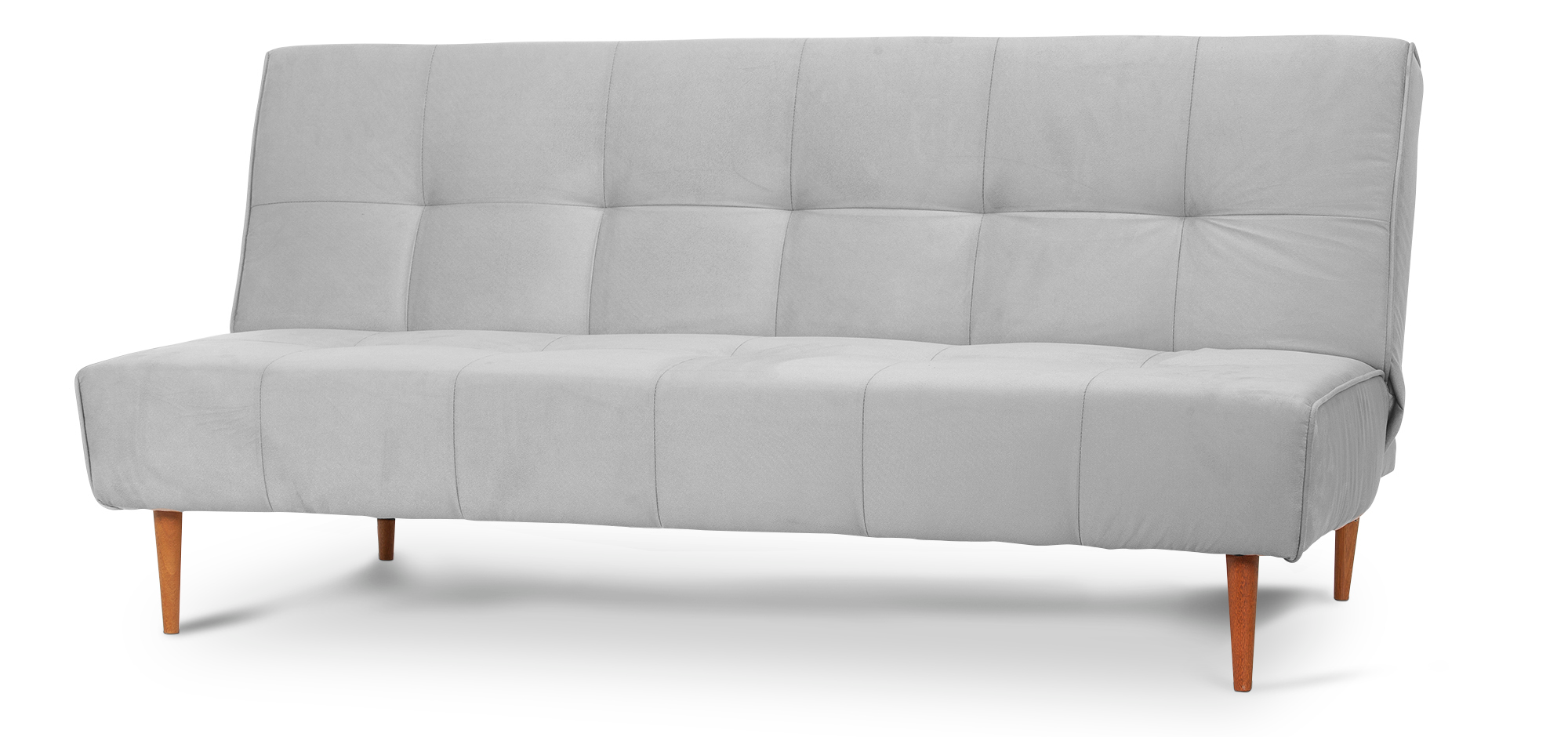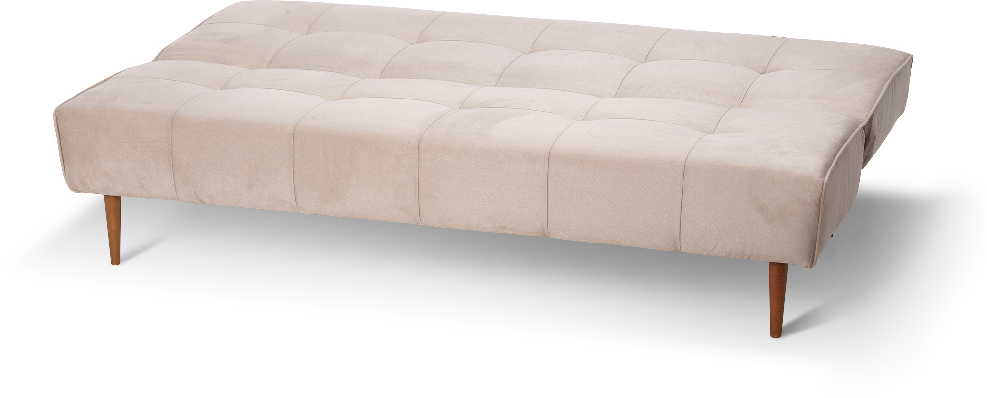 Sofácama de diseño minimalista. Plancha soft y resortes zig zag en el asiento. Patas de madera walnut.
